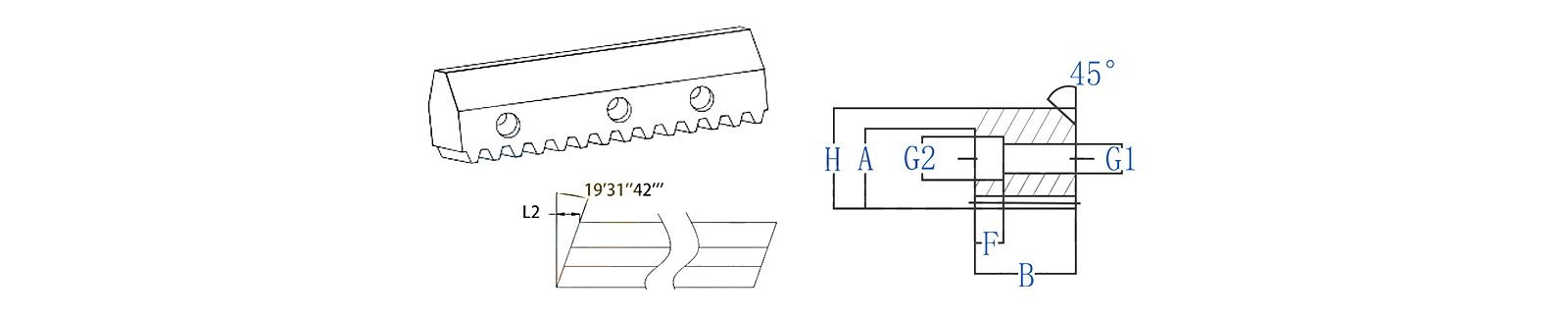 该齿条采用优质 42CrMo 钢制成,从材料层面确保了良好的强度和韧性。制造过程涉及牙齿的精密铣削和研磨,以及严格的多阶段检查。独特的 V 型导向螺旋齿设计,结合齿面和 V 型导向轨道的高精度磨削,保证了卓越的平整度和表面光洁度。这可以减少摩擦并在操作过程中实现更平滑、更稳定的线性运动。